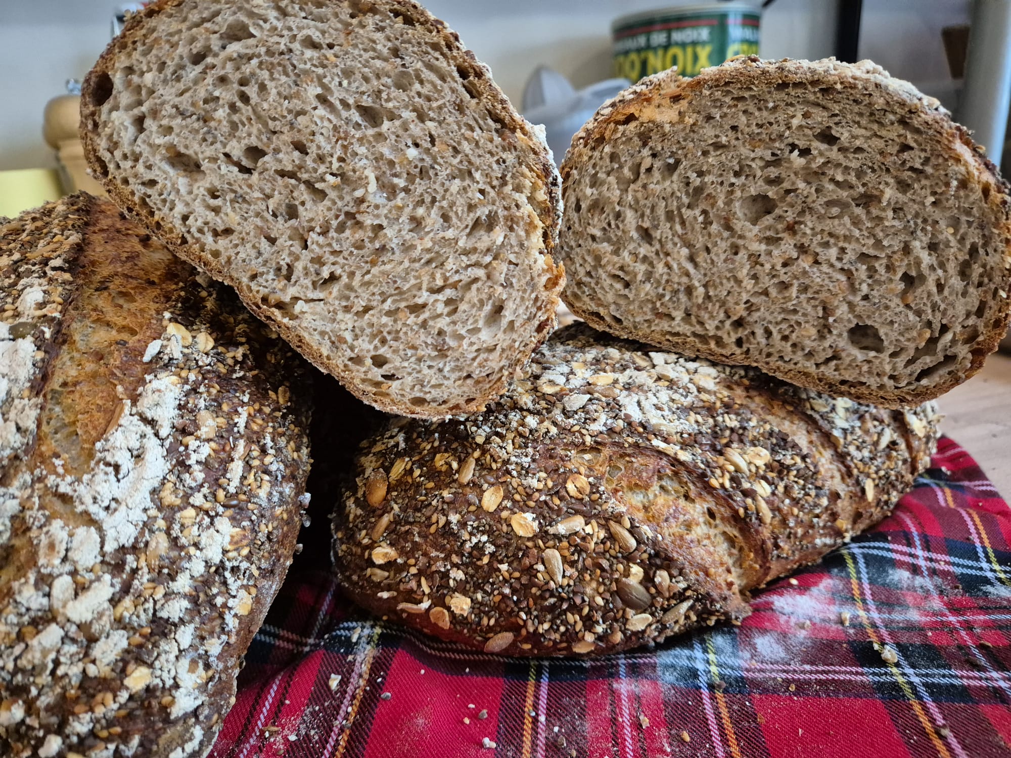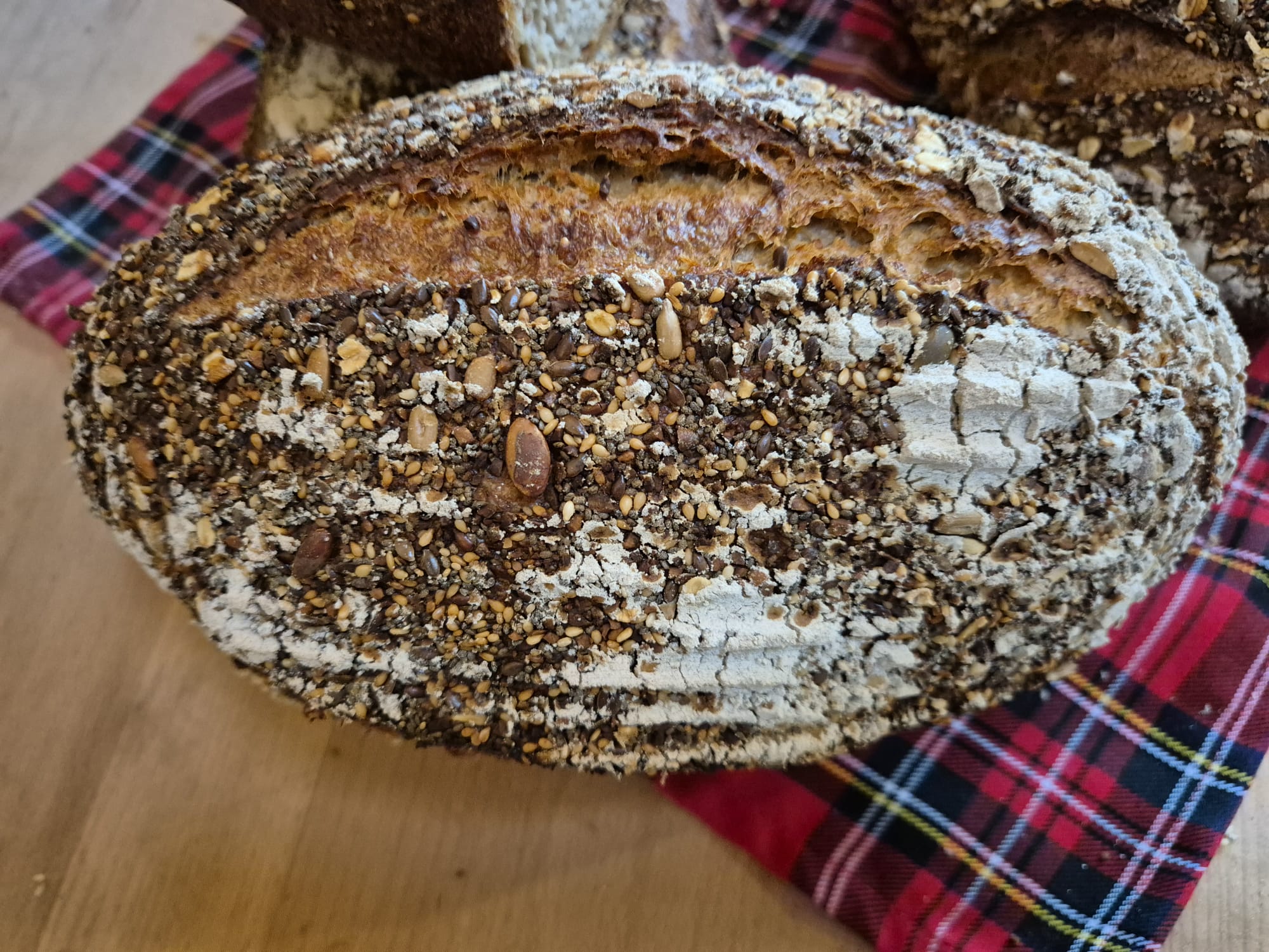 Der Wikinger Knust ist ein herzhaftes Weizenbrot mit Weizenvollkornanteil, das mit seiner einzigartigen Kombination aus proteinreichem Skyr, Sojaschrot, Chiasamen, Sonnenblumenkernen, Leinsamen und Sesamsaat überzeugt. Dieses Brot vereint Kraft und Geschmack – ideal für alle, die Wert auf hochwertige Zutaten und eine ausgewogene Ernährung legen. Außen rustikal, innen saftig – ein echtes Kraftpaket für jeden Tag.